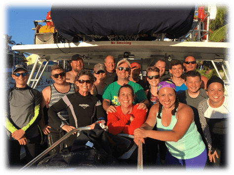 Our dive trips have become a cool way for families and friends to enjoy great diving and fellowship. All told, we made 15 dives, including the 2 night dives, three wreck dives, and a few deep dives to boot. There were laughs, tears of joy, and some great experiences, including many cool group dinners, and a visit at from a pirate ship. There was a bit of local sightseeing and a fantastic sunset dinner cruise on Friday.